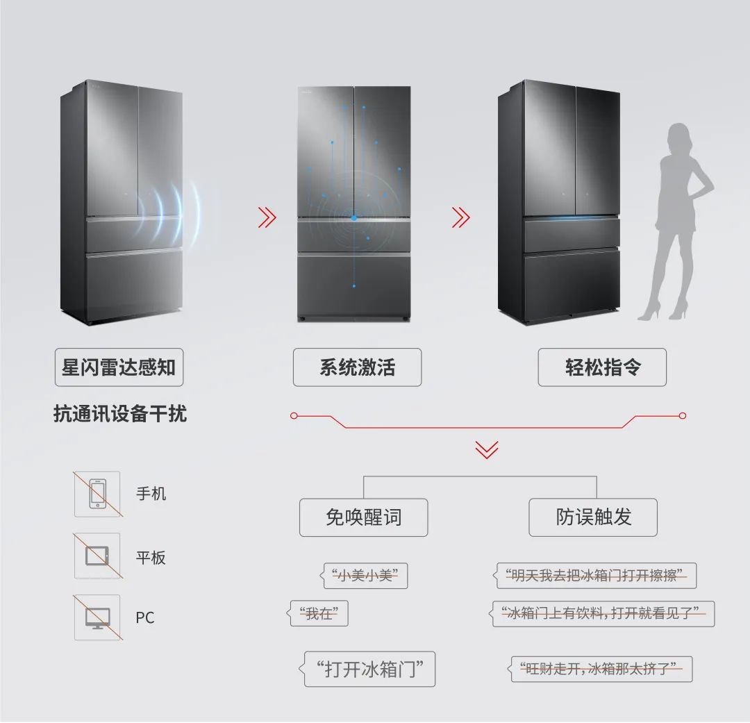 据介绍,COLMO TURING 2.0 冰箱搭载了最新的星闪雷达感知解决方案。当用户靠近冰箱时,系统将识别人体运动并迅速自动唤醒,无需多余的唤醒词就能直接进入自然语言交互模式。精准人感的首次引入,也避免了由于关键词提及导致冰箱门误触发的顽固现象。