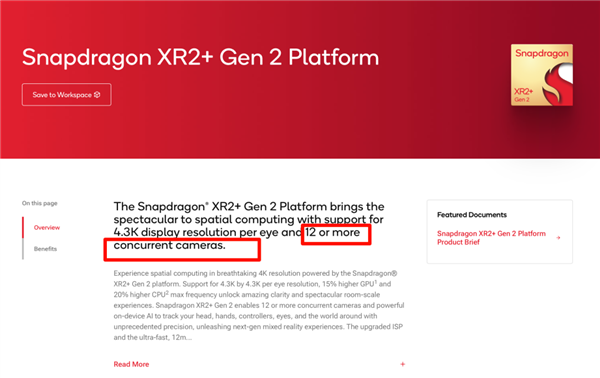 只看 CPU GPU,XR 系列的芯片性能确实一般,但是 XR 2+ Gen2 最多能同时处理 12 路视频流数据,正好能对上XR,尤其是 MR头显要处理多路视频流的需求。