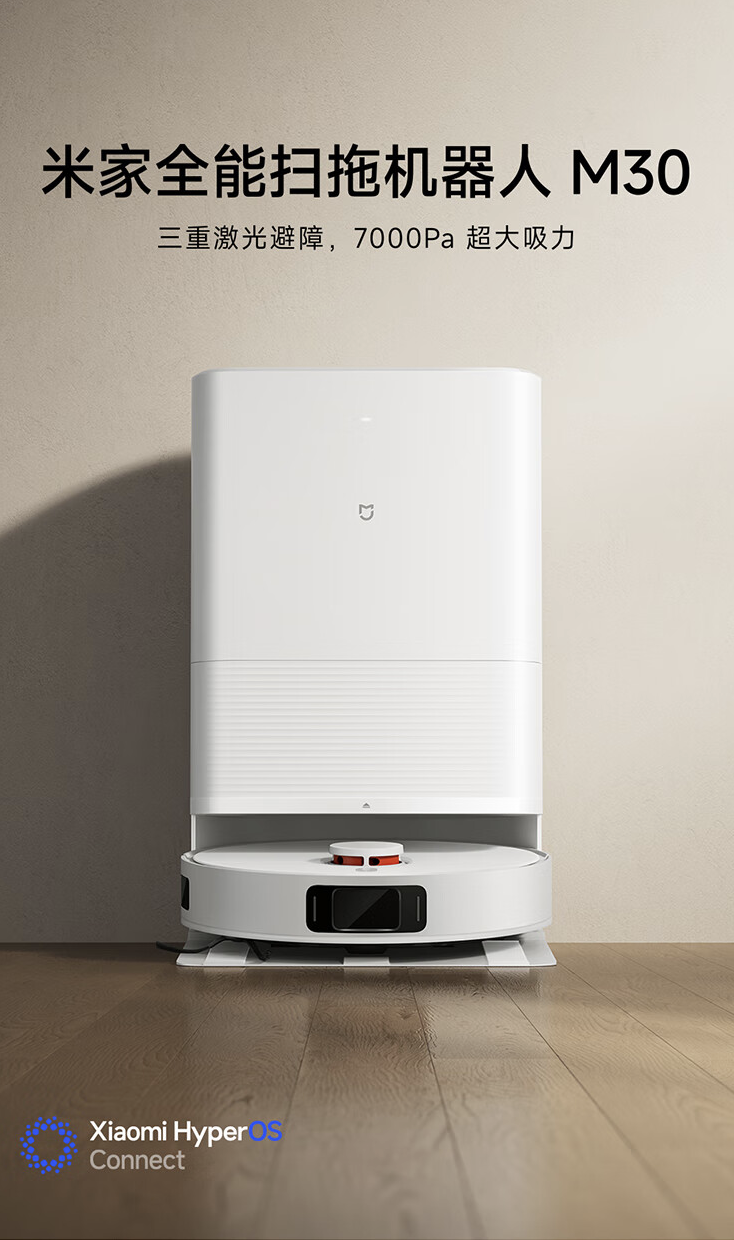 小米米家全能扫地机器人 M30 上架于 4 月 23 日,这款机器人配备“三重激光避障”,同时拥有 7000Pa 吸力,首发价 2599 元。