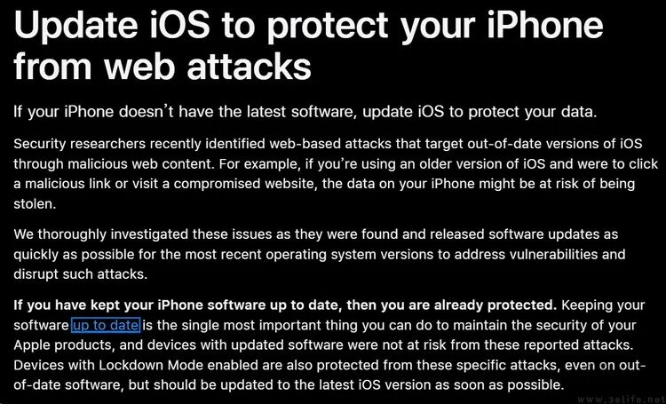 但苹果偏偏就打破了这一潜规则。此次针对旧版iOS系统网页攻击漏洞,苹果不仅快速推出补丁,还同步启动了全国范围的科普与服务支持。在全国的Apple Store零售店、授权经销商及授权服务提供商均开放软件版本检测与更新协助服务,此外官方渠道同步推送安全防护指南,告知用户风险点与防护方法。