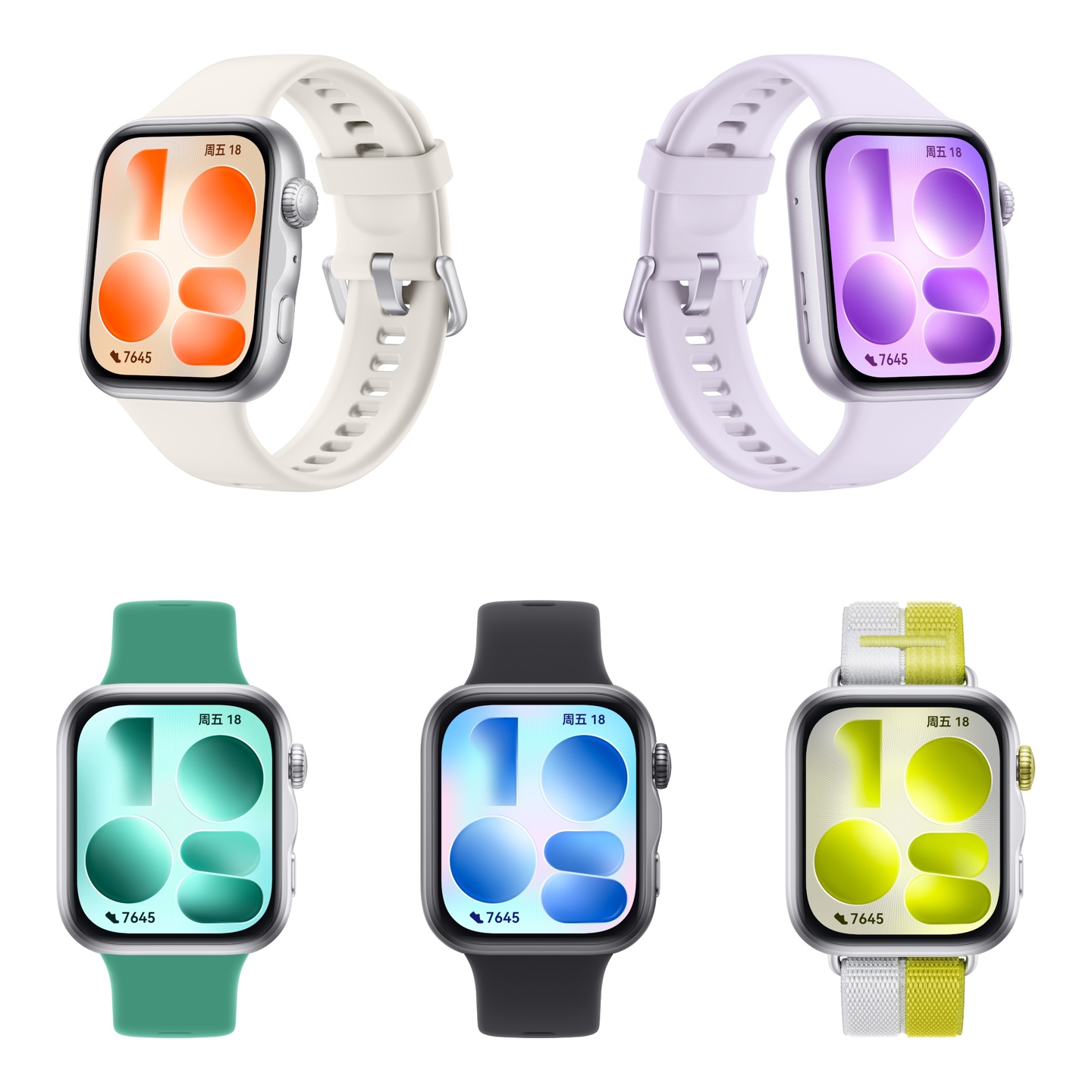 FIT 5 定义更加潮流轻薄,重量轻至 27g,厚度 9.5mm,1.82 英寸大屏,峰值亮度 2500nits;光织银 100% 再生铝合金 +13.75% 再生玻纤底壳 + 表带近乎 100% 再生尼龙材质,更加环保。配色有韵律黑、悦动白、风信紫、光织银、向新绿。包括专业运动和健康监测都有升级。