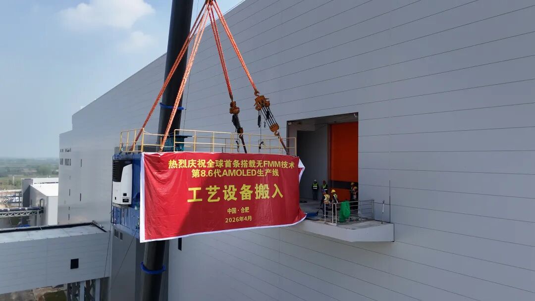 1.全球首条搭载无FMM技术第8.6代AMOLED生产线举行工艺设备搬入仪式