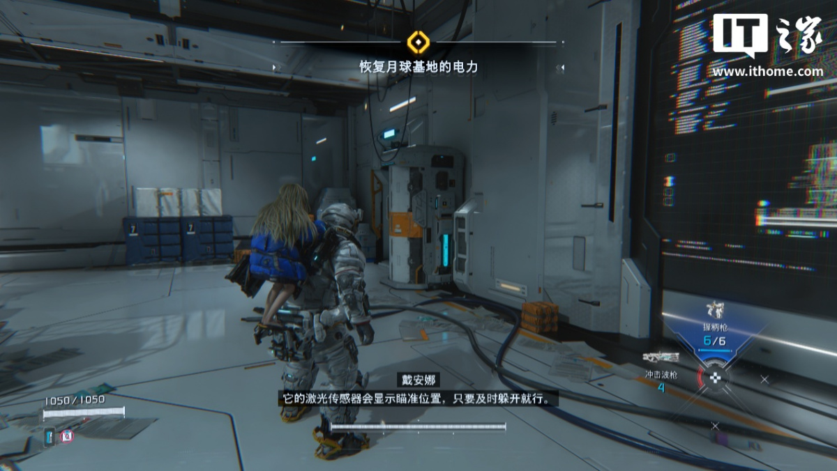 然后,戴安娜拥有很多人格化魅力,比如待机时趴在主角背上搞小动作,在空间站自顾自跑跑跳跳、到处张望,还会和主角聊天。