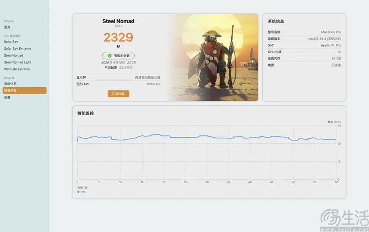 此外,由于3DMARK现在已经原生支持macOS,所以我们也用它进行了跑分。那么这个成绩是什么水平呢?我们手头的一台顶配骁龙X Elite笔记本电脑,在相同项目中的得分仅有1161分。从公开的数据库来看,9000分以上的SBE分数,已经不输AMD Radeon 780M、Intel ARC 140T等顶级核显的水平。