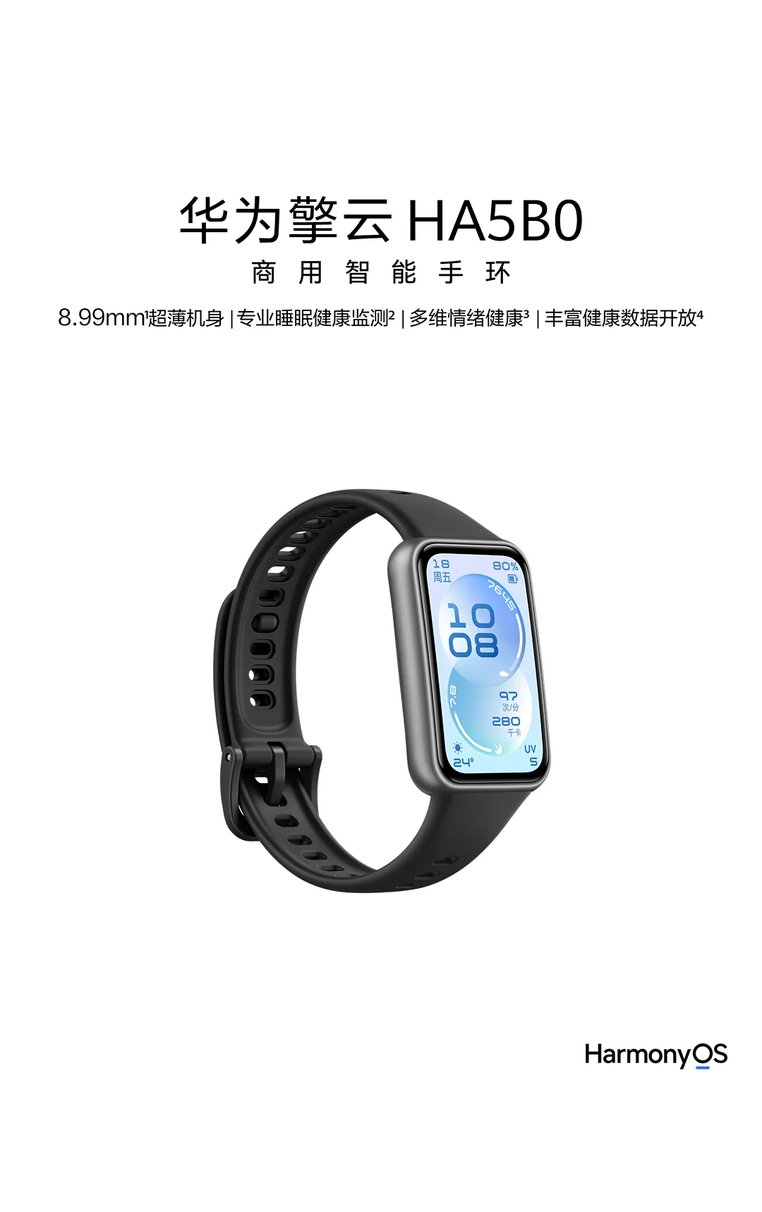 IT之家 4 月 17 日消息,华为推出了最新的擎云 HA5B0 商用智能手环新品,搭载 HarmonyOS 智能终端操作系统,支持连接 iOS 及 Android 手机。