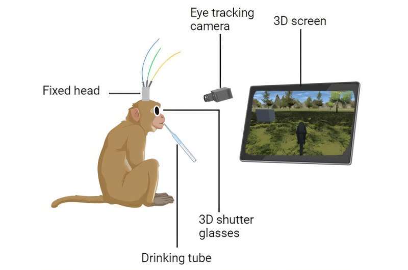 在实验的一部分中,猴子学会好在屏幕上移动动物体;另一部分实验里,它们以第一视角在森林场景中控制猴子虚拟形象。猴子观察屏幕上的动作(被动注视),并通过大脑活动完成多项不同任务的移动操控。