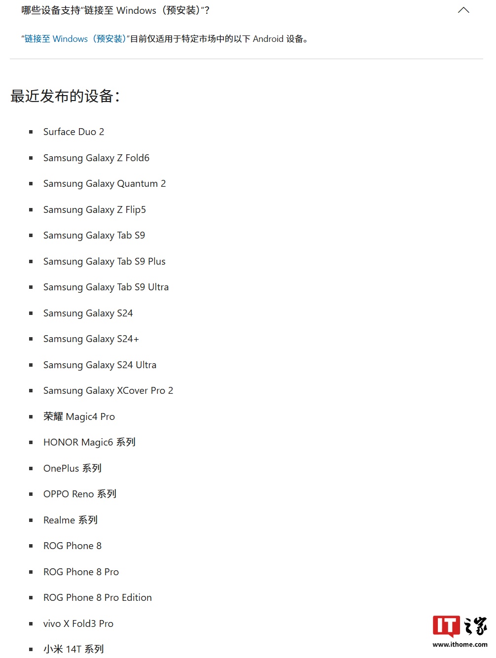 IT之家 10 月 14 日消息,微软官网现更新支持“手机连接”应用体验的设备名单,在最近发布的设备名单中,出现了小米 14T 系列手机。