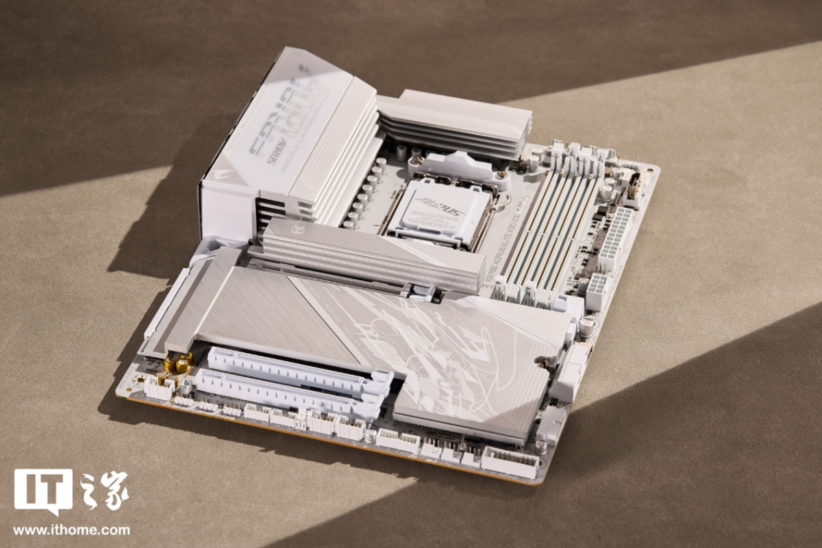 技嘉冰雕系列主板一直采用银白主色调,元器件的白色涂装很彻底,从 PCB 板到散热装甲、PCIe 和内存插槽,甚至是供电接口都做成了白色,颜值和辨识度非常高。这次加入了 X3D 新型号,更适合主流游戏玩家选择。