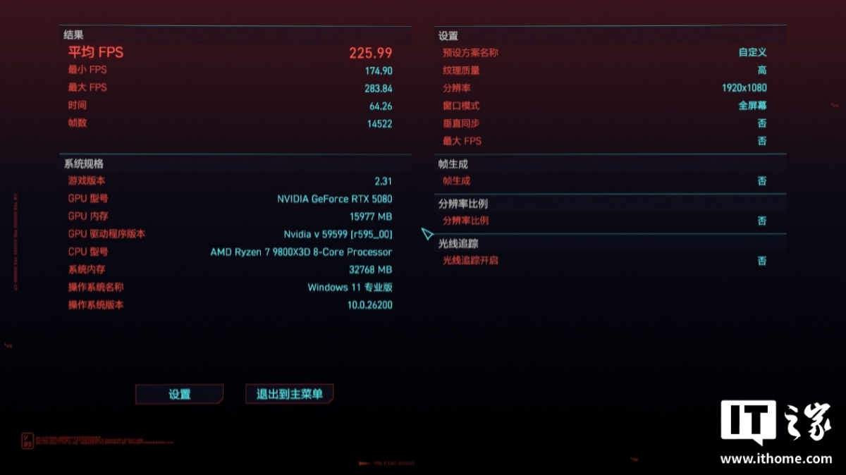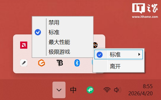 玩家初次装机后,进入系统会自动提示安装 X3D 模式组件,安装完成直接常驻在任务栏扩展区,只需手动选择性能模式,待自动重启后即可完成模式切换。本次测试IT之家将搭配 RTX 5080 显卡,对比「标准」模式和「极限游戏」模式下的 1080P 游戏性能。