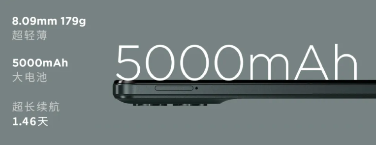 该机拥有 5000mAh 电池,支持 33W 有线充电;机身厚度 8.09mm,重量 179g。
