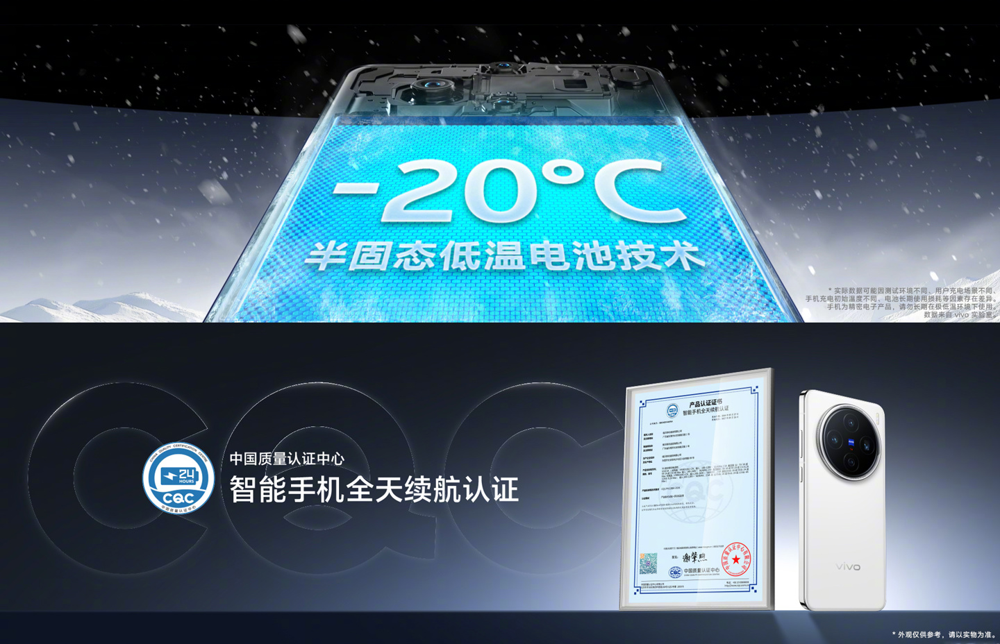 vivo X200 标准版手机机身厚度约 7.99mm,内置 5800mAh 蓝海电池,宣称可连续追剧 20.3 小时。另外,在半固态技术的加持下,官方称零下 20 度也能使用。