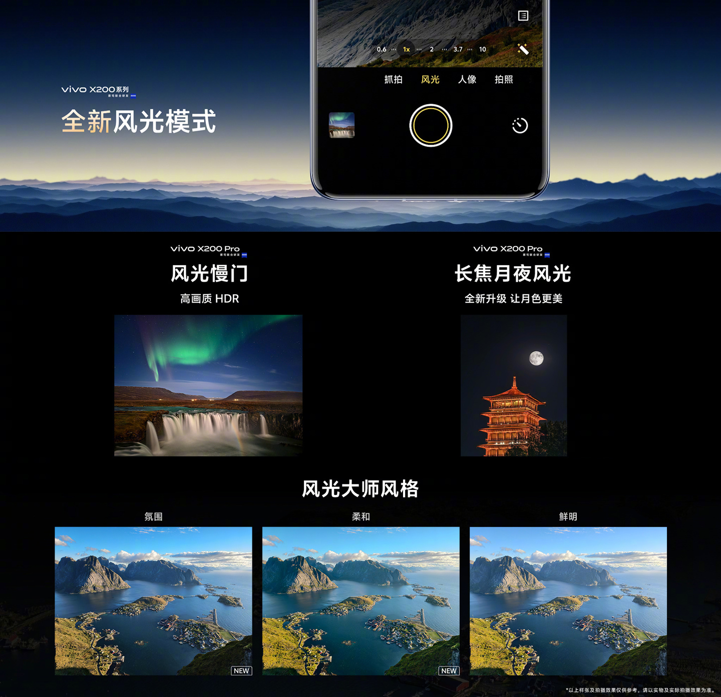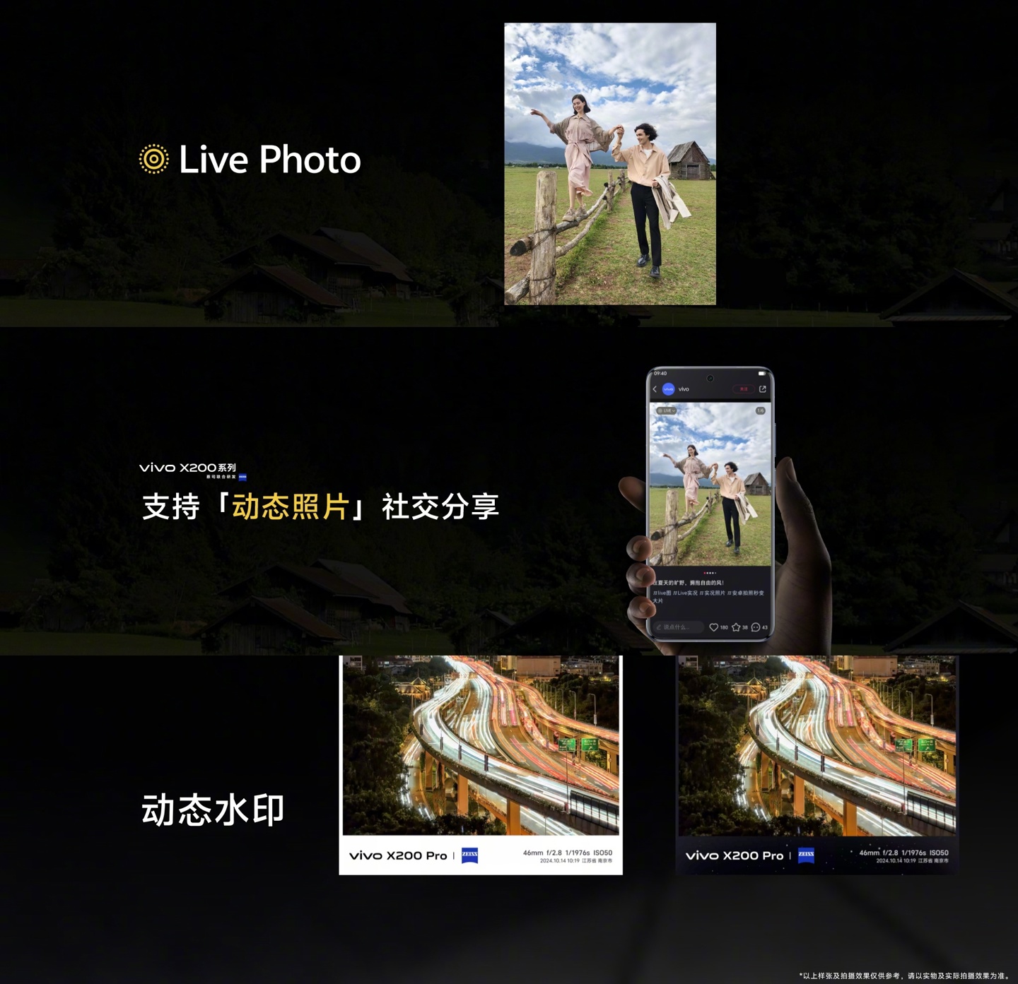 vivo X200 系列手机还新增 2 款风光大师成像风格、长焦月夜风光,支持分享到小红书等平台,同时新增动态水印功能,照片和水印均支持动态效果。