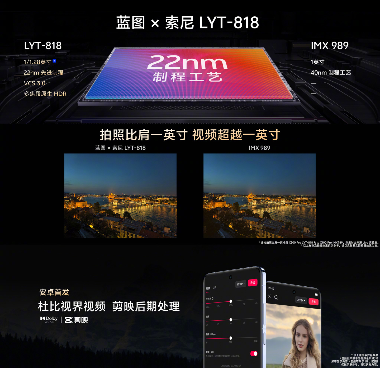 IT之家 10 月 14 日消息,vivo X200 Pro 手机今晚正式亮相,该机主摄搭载蓝图 × 索尼 LYT-818 传感器(1/1.28 英寸、22nm 制程工艺)。