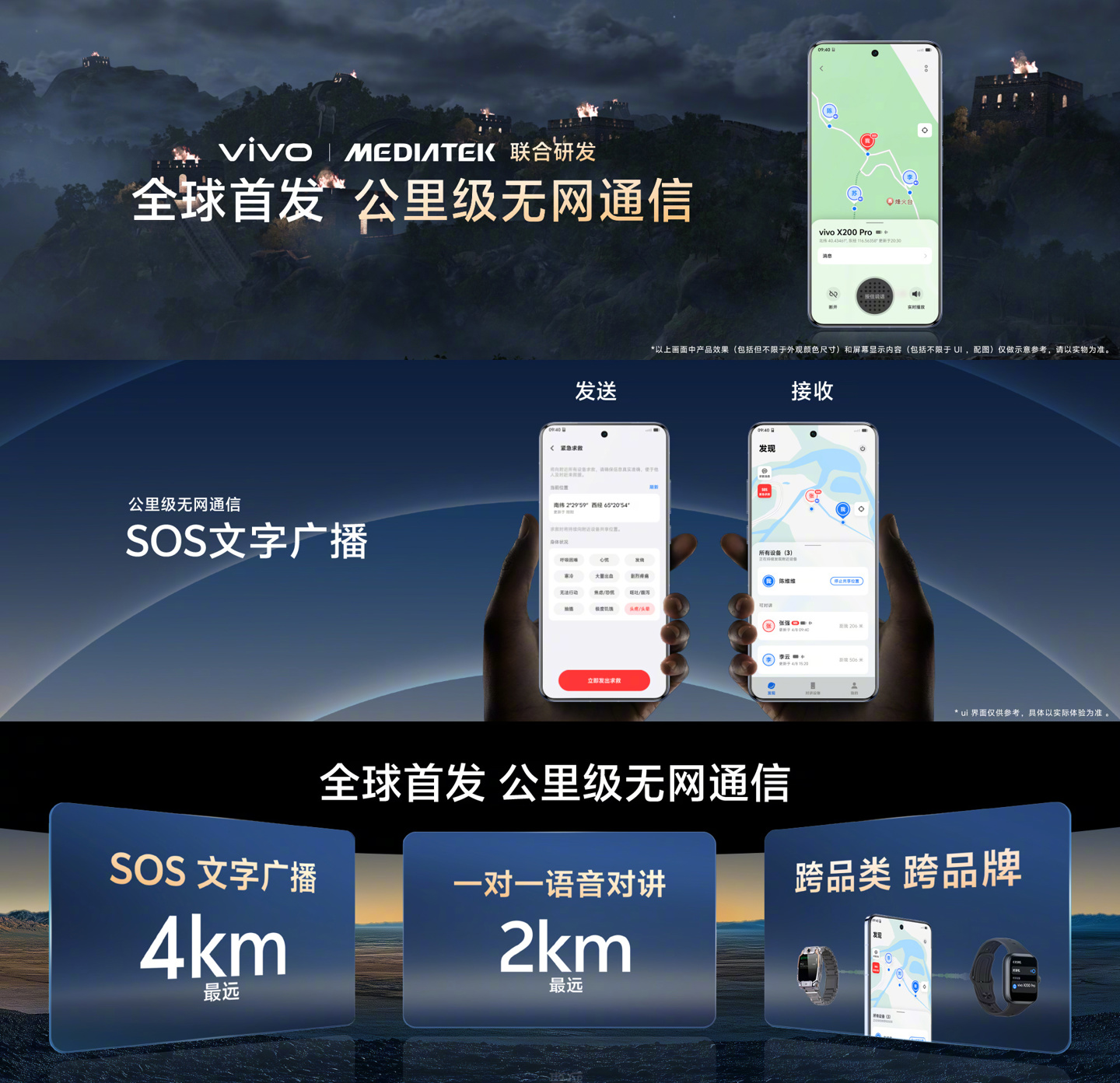 据介绍,vivo X200 Pro 手机首发公里级无网通信,支持最远 2km 一对一通话对讲、最远 4km SOS 文字广播。IT之家注意到,X200 Pro 手机的 16GB+1TB 卫星通信版本支持北斗卫星通信。