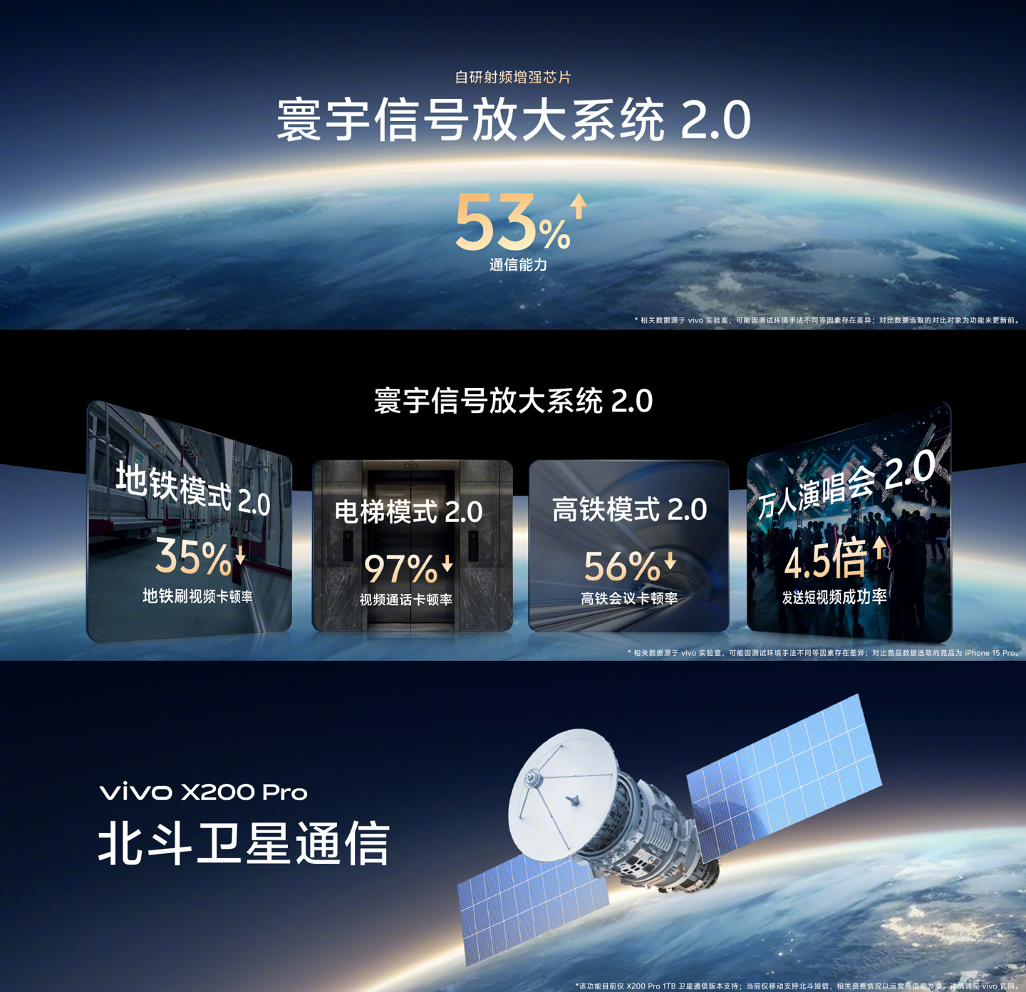 IT之家 10 月 14 日消息,vivo X200 Pro 手机官宣全球首发公里级无网通信,官方称在自研射频增强芯片加持下,通信能力整体提升 53%,适配高铁、地铁、万人演唱会等场景。