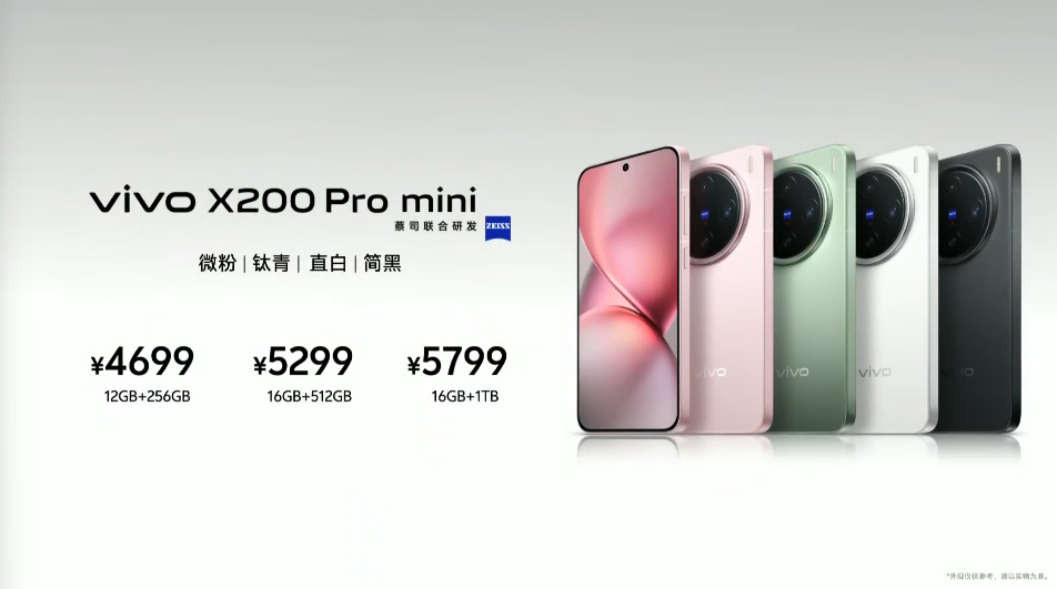 IT之家获悉,vivo X200 Pro mini 提供简黑、钛青、微粉、直白四款配色,6.31 英寸直屏设计,配备 5700mAh 蓝海电池,支持 90W 有线快充、30W 无线快充。