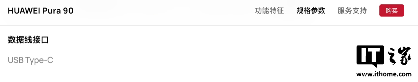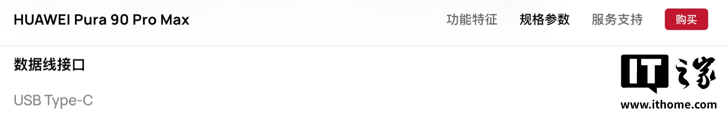 IT之家参考华为官网获悉,Pura 90 / Pro / Max 三款手机页面“数据线接口”描述为“USB Type-C”,有购买需求的IT之家小伙伴们需要注意。