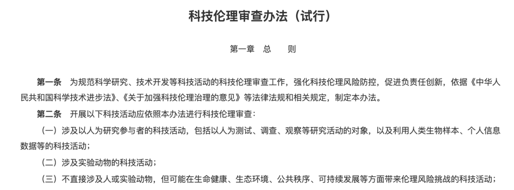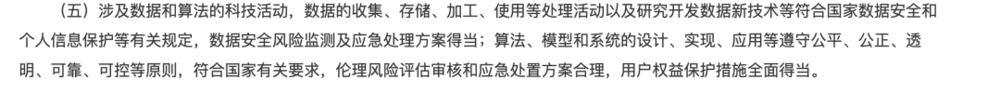 科技部、教育部、工业和信息化部等部委2023年联合印发的《科技伦理审查办法(试行)》中明确提出:“可能在生命健康、生态环境、公共秩序、可持续发展等方面带来伦理风险挑战的科技活动,应当进行科技伦理审查;数据的收集、存储、加工、使用等处理活动以及研究开发数据新技术等,应符合国家数据安全和个人信息保护等有关规定。”