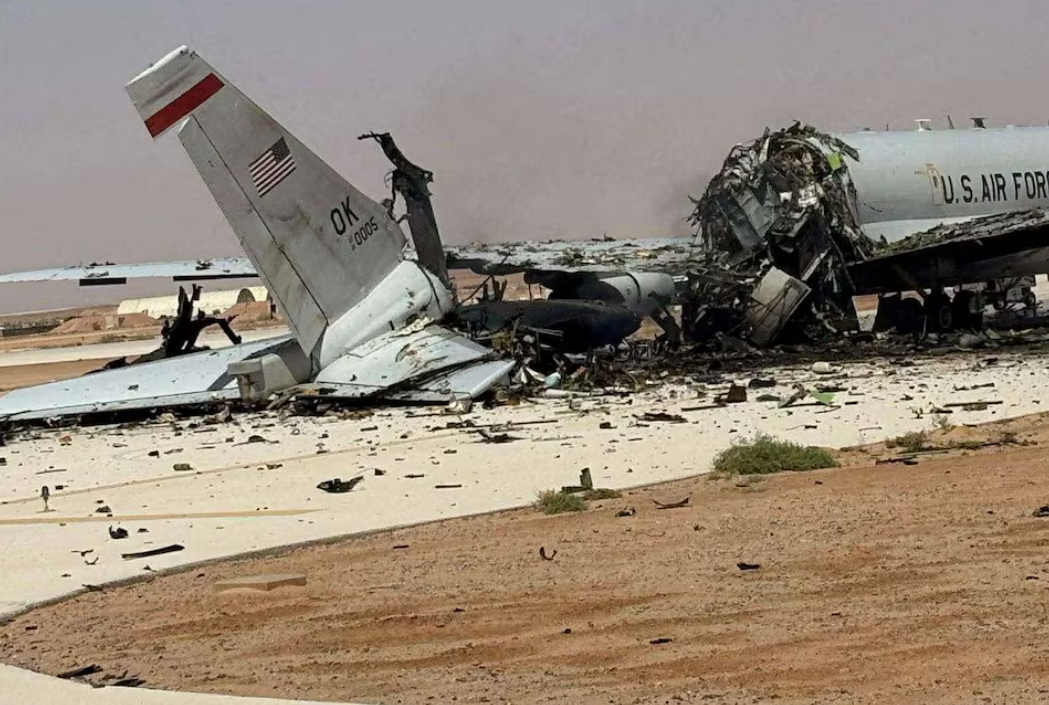 一架受损的美国波音E-3“哨兵”空中预警与控制飞机停留在沙特阿拉伯苏丹王子空军基地