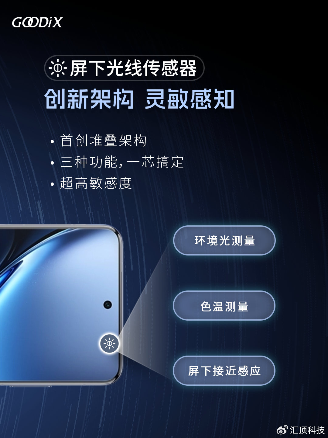 vivo X200 系列手机配备汇顶新一代屏下光线传感器,采用 2.5D 堆叠式设计,支持环境光、色温测量和接近感应“三合一”功能。该方案还具备高灵敏度的红外感应能力,一颗激光发射器即可实现屏下接近感应;通过其短曝光特性,可降低屏幕自发光对环境光测量干扰。