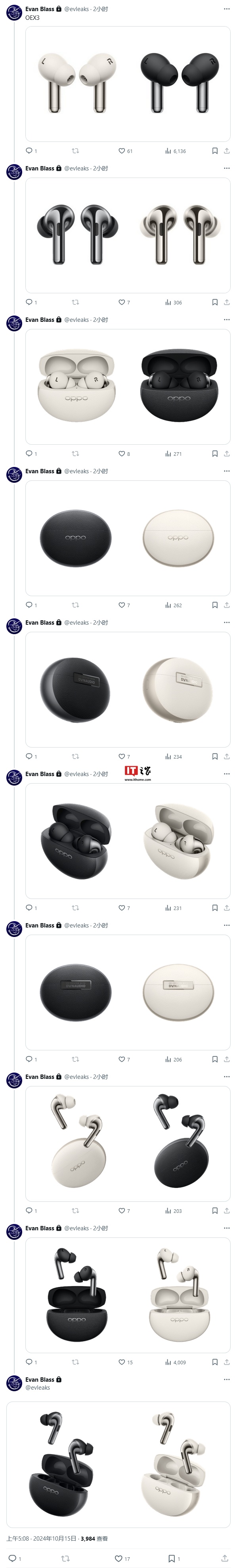 IT之家 10 月 15 日消息,消息源 Evan Blass 今天(10 月 15 日)在 X 平台发布系列推文,分享了 OPPO Find X8 系列智能手机、OPPO Pad 3 Pro 平板以及 Enco X3 无线耳机的高清渲染图,上述三款产品将于 10 月 24 日发布。