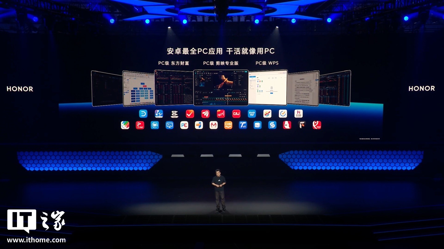 此外,荣耀平板将迎来 PC 级桌面焕新。最新发布的荣耀 MagicPad 3 Pro 12.3 英寸平板支持 PC 级系统交互,可使用 PC 版东方财富、 PC 版剪映专业版、 PC 版 WPS 等应用。