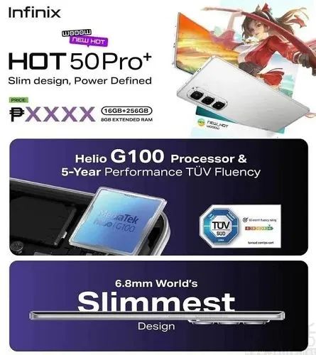 日前,传音旗下Infinix品牌已在海外市场预热新机Infinix Hot 50 Pro Plus,并已确认其将搭载联发科Helio G100主控,以及8GB+256GB存储组合。而这款新机最大的亮点便是其采用了超薄设计,机身厚度仅有6.8mm,将成为近年来最薄的非折叠屏智能手机之一。