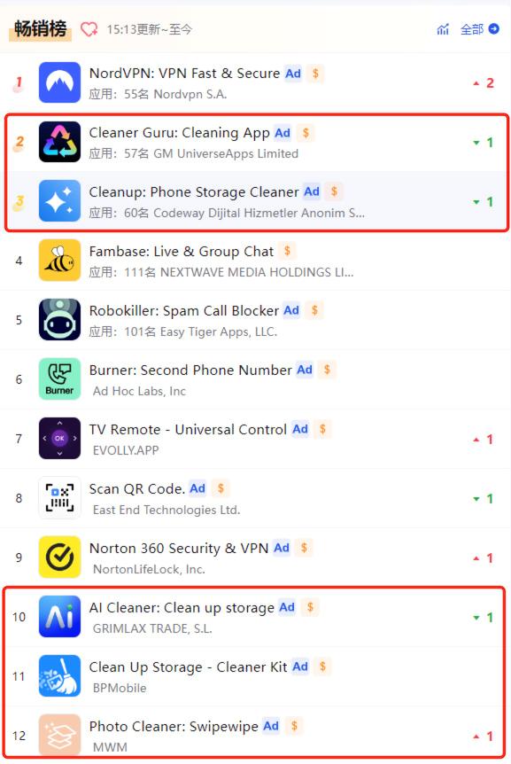 上周,在编辑部日常巡榜时观察到有一款清理工具 Cleaner Guru:Cleaning App 在美国 iOS 下载榜上快速冲榜,一路登顶。本以为一天游,结果这款 App 还坚持了挺长时间。