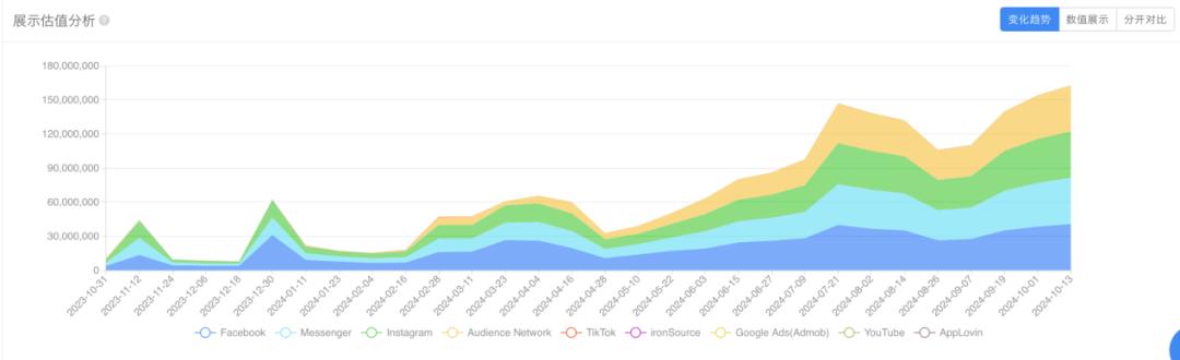 Cleaner Guru 这一波的增长主要是靠广告投放,按广大大预估的数据,从 7 月 10 日开始,这款产品的每7天广告展示量就超过了 1 亿次,而且大多数时候在 1.5 亿次左右,能有这么大的展示量,投得出去也是一种本事。
