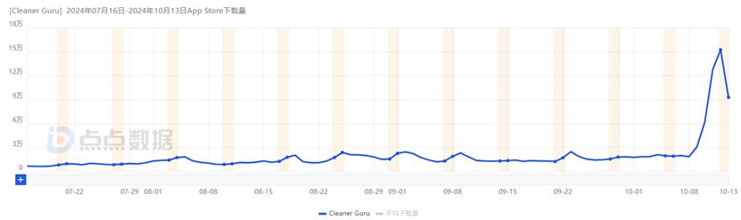 但结合下载量来看,在这一波增长之前,Cleaner Guru 的广告投放效果并不好。而随后,在调整了投放素材和投放渠道之后,从 10 月 9 日开始,Cleaner Guru 下载量开始猛增,单日下载量超 15 万。