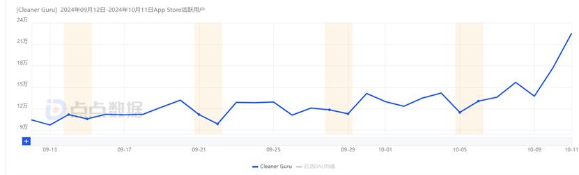 Cleaner Guru 的近一年美国 iOS 端 DAU 数据, 注:该数据截止到 2024 年 10 月 11 号