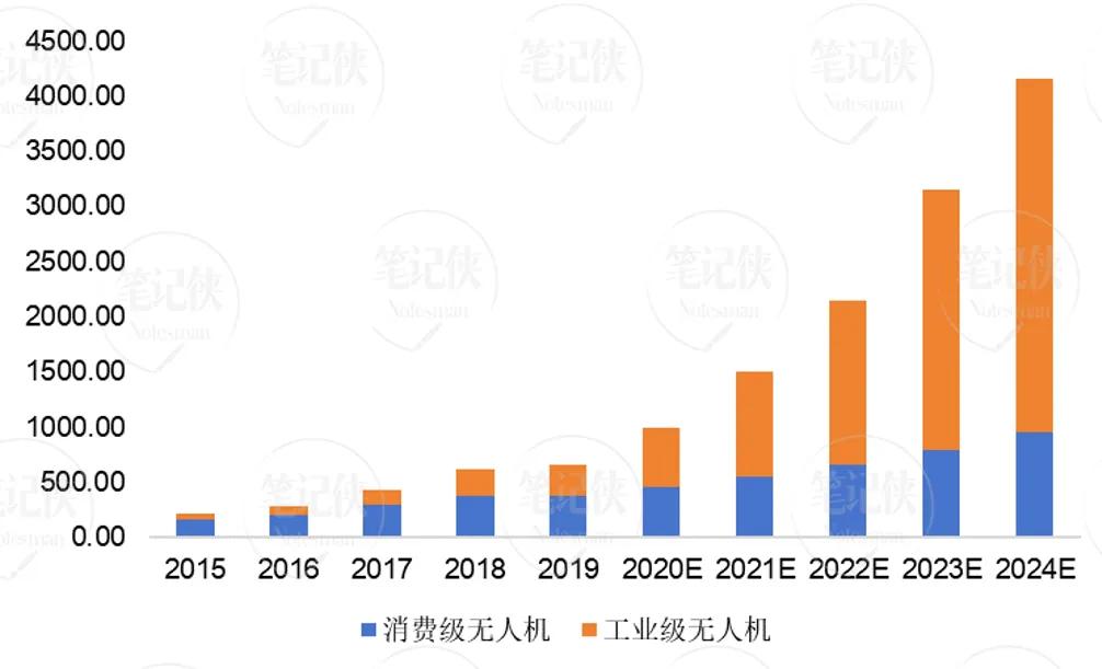 预计到2024年,全球无人机市场规模将突破5,000亿元。