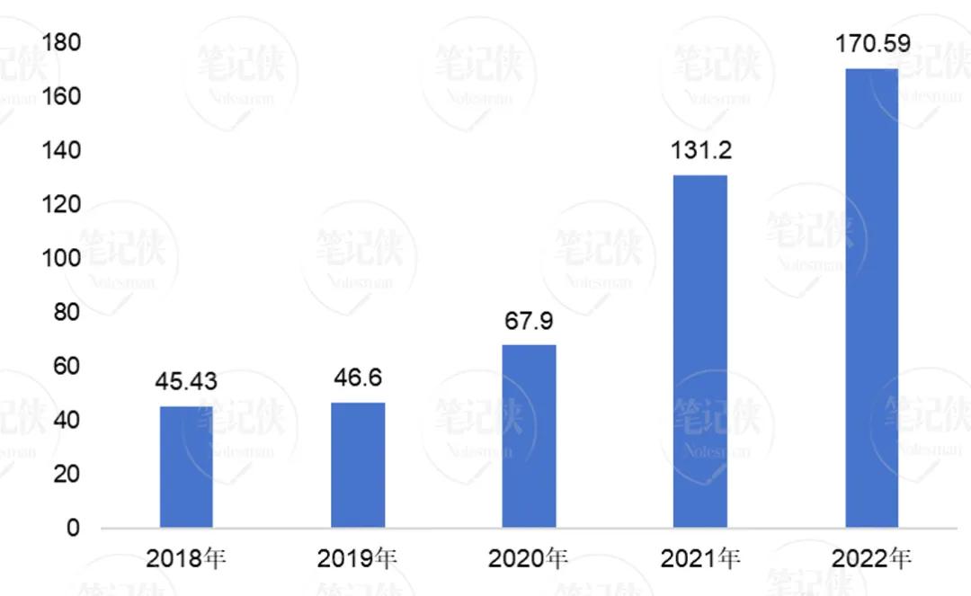 图9 2018-2022年中国植保无人机市场规模变化(单位:亿元),资料来源:中投顾问