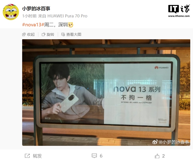 华为 nova 13 系列手机被曝即将发布,有网友已经晒出了新机的线下宣传海报,依然是由易烊千玺代言。
