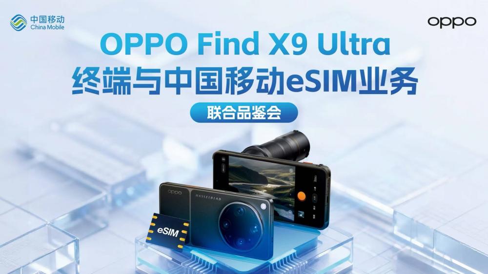 4月20日华为发布三款eSIM新机,4月21日OPPO发布Find X9 Ultra旗舰终端,4月24日中国移动联合OPPO召开Find X9 Ultra品鉴会。五天之内,华为、OPPO相继亮出eSIM旗舰阵容,全面深度适配中国移动eSIM业务。这不是偶然,而是中国移动全面拥抱eSIM产业浪潮后,生态伙伴协同并进的结果。