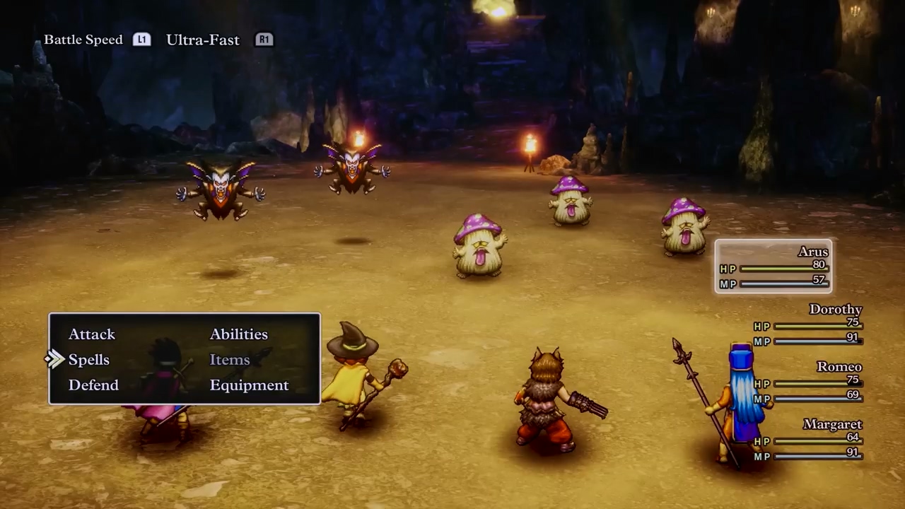 该游戏采用回合制战斗,玩家将与各种生物对抗,重制版提供了快速和超快速选项,玩家可以根据需求加快游戏进程。