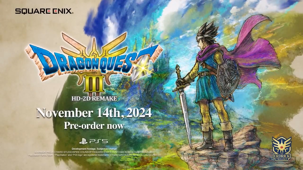 IT之家曾于今年 9 月报道,《勇者斗恶龙 3:HD-2D 重制版(Dragon Quest III HD-2D Remake)》顺利开发完成,本作将于 11 月 14 日(北京时间 2024 年 11 月 15 日)发售,登陆 PS5、Xbox Series X|S、Switch、PC 平台。