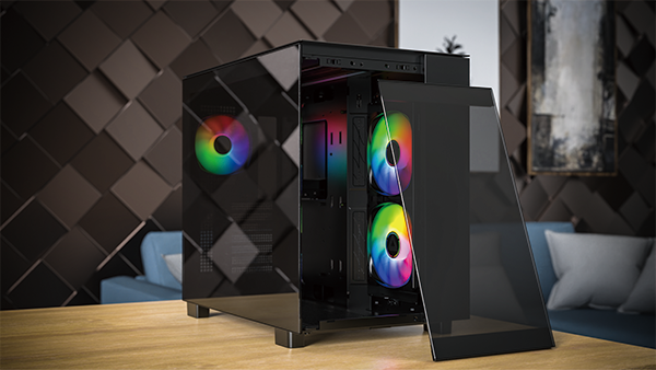 该机箱右侧预装双 140mm 反叶 ARGB PWM 风扇,后方则预装一颗 120mm ARGB PWM 风扇。
