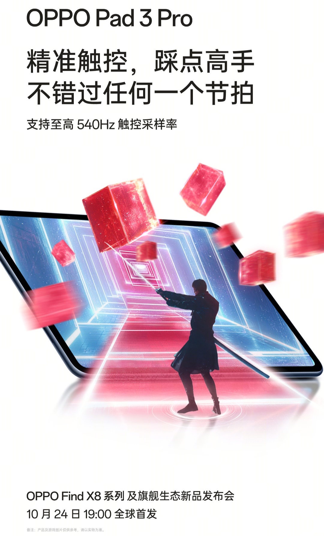 IT之家 10 月 15 日消息,OPPO Pad 3 Pro 平板已官宣今年 10 月 24 日发布,官方今日对该平板进行预热:支持至高 540 Hz 触控采样率。