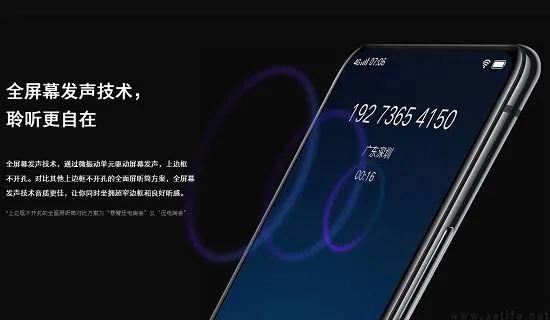 在当时的vivo NEX上,屏幕发声技术也进一步完善。其通过将压电陶瓷片改为微驱动单元、即激励器,实现了先激励中框、再带动屏幕振动的发声机制,这一改进的关键点在于声音的传递介质是屏幕、而非空气,因此无需听筒/扬声器必备的腔体结构,不仅可以节省机身内部空间,也因为取消了屏幕顶端的开孔使得屏占比进一步提升。