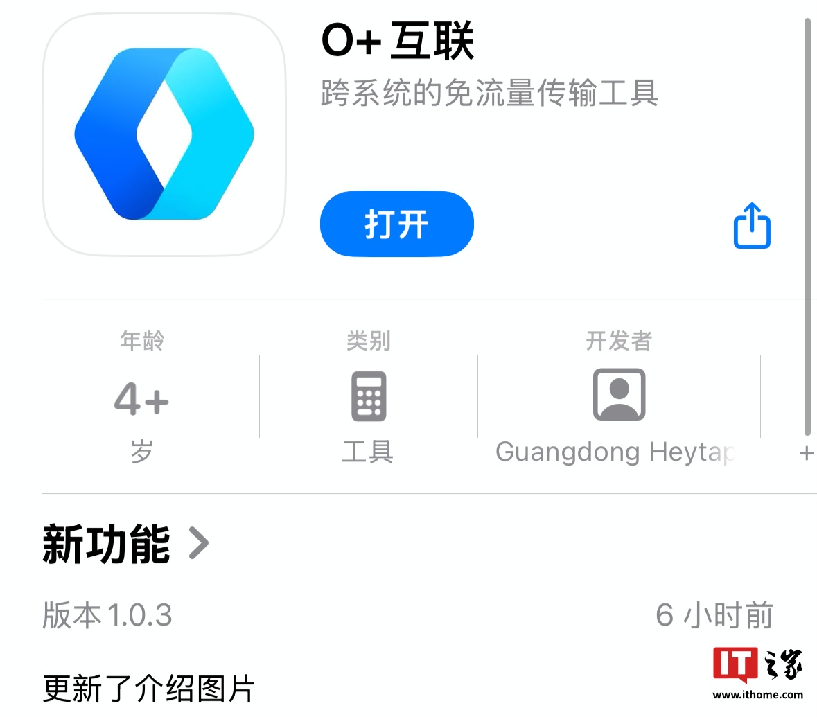 IT之家 10 月 15 日消息,OPPO 官方开发的 O+ 互联应用 1.0.3 版本今日上架 App Store,根据官方描述来看,该应用支持 OPPO / 一加 / realme 手机与苹果设备互联互通。
