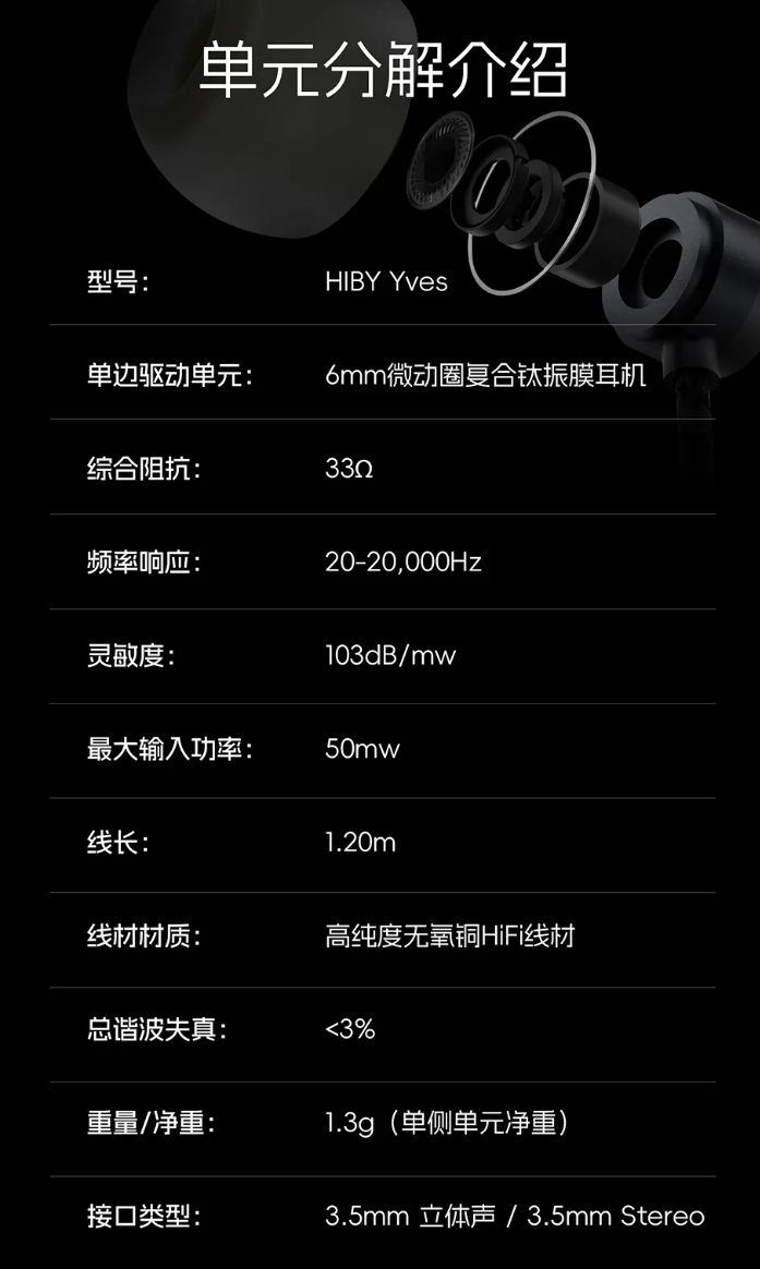海贝 HiBy YVES 入耳式有线耳机现已在京东开售,定价 98 元,IT之家附参数表如下: