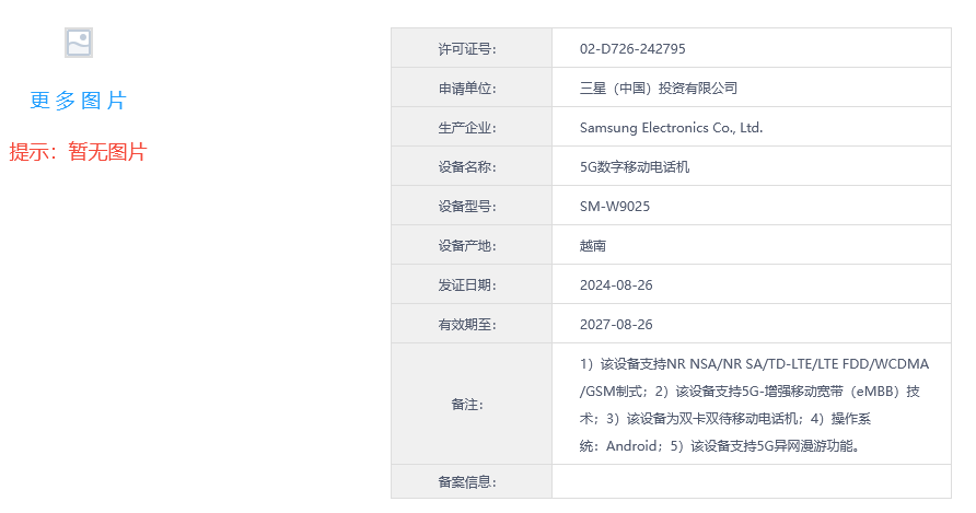 IT之家查询已发现三星 W25 踪迹,但目前工信部网站并未公布该机的规格和定妆照: