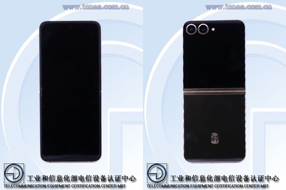 从上述数据来看,整体规格和三星 Galaxy Z Flip6 相似,IT之家附上相关“定妆照”如下,机身背面可以看到“心系天下”字样: