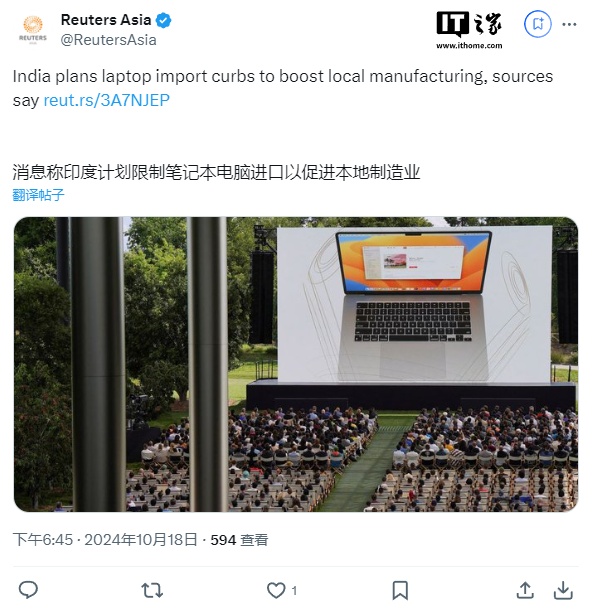 IT之家 10 月 18 日消息,路透社援引政府消息人士的话称,印度计划从明年 1 月起限制笔记本电脑、平板电脑和个人电脑的进口,旨在推动苹果等公司增加印度制造的份额。