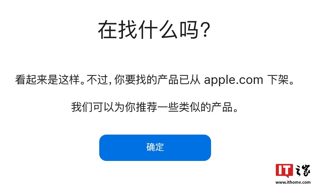 IT之家目前访问苹果中国官网,已无法查询到相关产品,通过直接链接访问,会跳出以下提示: