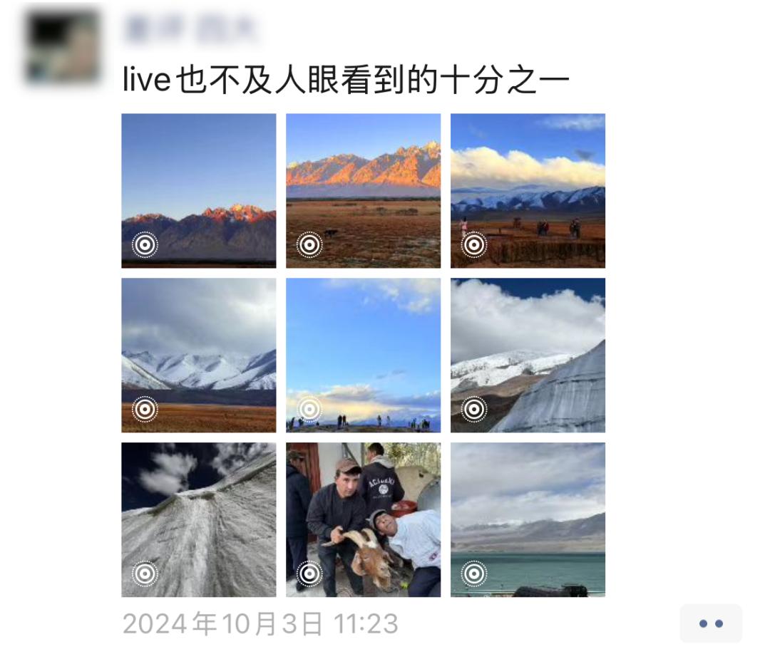 有同事国庆去了新疆,看了雪山,传了 9 张 Live 图。