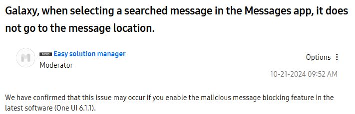 IT之家 10 月 22 日消息,三星公司承认 One UI 6.1.1 更新导致短信(Samsung Messages)应用出现故障,筛选功能无法正常运行。