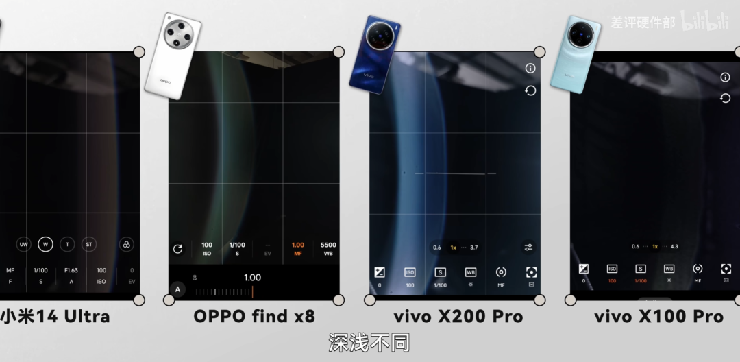 既然设置好了实验,我们也顺便测试了一下目前市面上主流的几款旗舰机型的炫光情况。