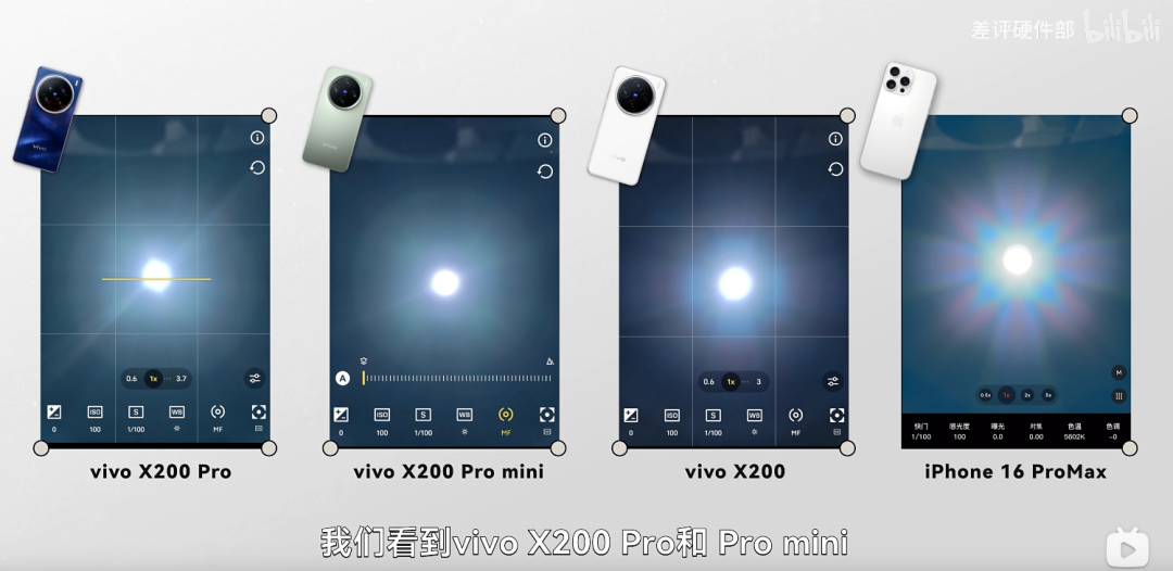 X200Pro 的炫光最为明显,X200 Pro mini 次之,X200 标准版最不明显。三者在特定角度下,均能触发画外炫光。